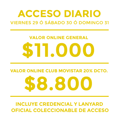 Los clientes de Movistar tienen 20% de descuento y los precios no incluye el cargo por servicio de la Ticketera. Las entradas son personales e intransferibles.
